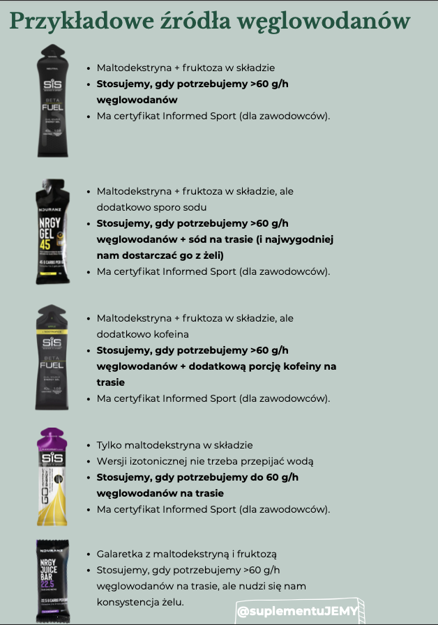 • żele w trakcie biegu